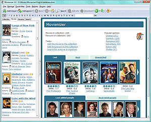 Movienizer is a powerful movie catalog program that can be used to organize movie collection, to learn more about movies and actors etc. Enter the title (barcode) of a movie, and the program will automatically download necessary information: cast and crew, genre, year of publishing, covers, shots from the movie etc. If you need more information about some person (director, writer, actor/actress), just hit "Download" and Movienizer will provide the complete filmography, biography and other details. The program features a number of printer-friendly reports, and with its report builder you can create your own ones. Create your wish lists. Apply various filter and create lists with the powerful search engine. Import your movie catalogs from other programs easily with plugins.